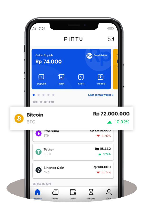 Pilih aset crypto yang ingin Anda beli / jual di daftar aset crypto di halaman beranda. Anda juga dapat mengakses fitur beli / jual crypto di kartu dompet atau di halaman dompet crypto.